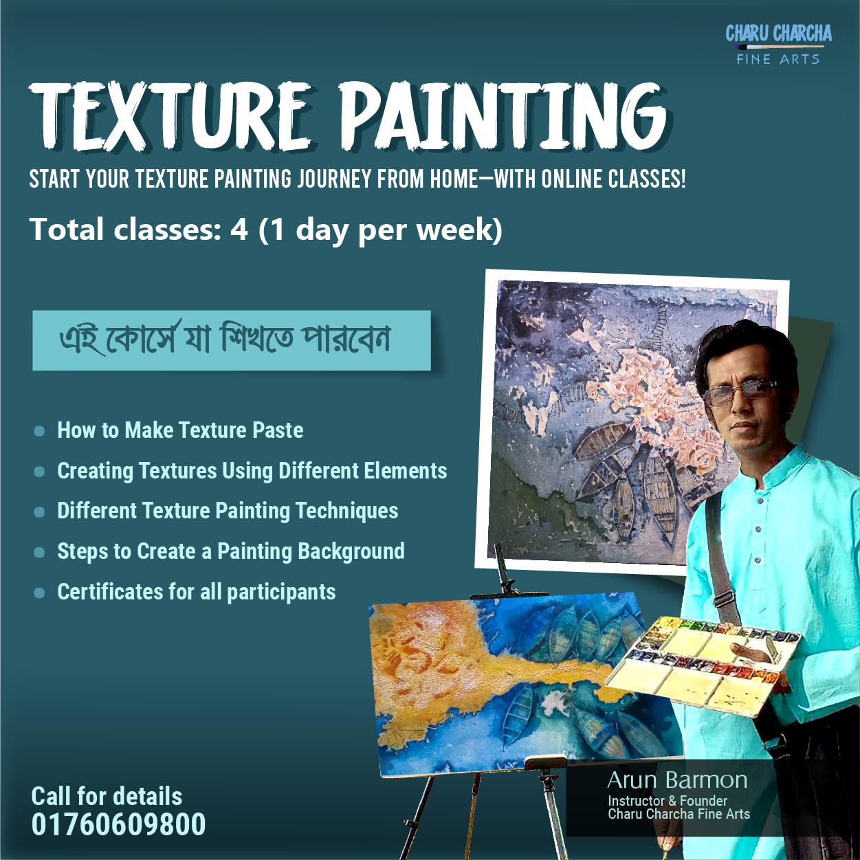 আপনার টেক্সচার পেইন্টিংয়ের যাত্রা শুরু হোক ঘরে বসেই—লাইভ ক্লাসের মাধ্যমে!
